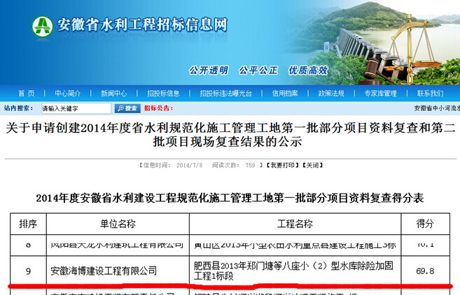 同時按照《安徽省水利建設工程規(guī)范化施工管理工地評選辦法》(皖水行協(xié)[2014]6號)的要求,安徽省水利水電行業(yè)協(xié)會施工企業(yè)分會組織了復查組,對第一批通過現(xiàn)場復查且于6月30日前完工的16個項目的工程資料、現(xiàn)場管理等方面,進行了復查,對第一批16個項目的工程資料進行了賦分。肥西縣2013年鄭門塘等小(2)型水庫除險加固工程1標段順利通過了復查。
