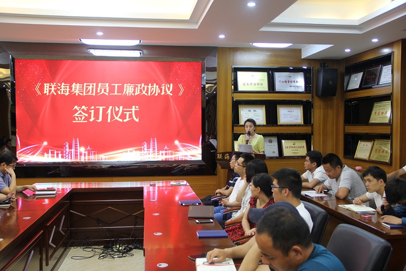 為加強(qiáng)集團(tuán)廉政建設(shè),嚴(yán)肅工作作風(fēng),構(gòu)建誠信體系。7月12日,集團(tuán)公司舉行了員工廉政協(xié)議簽訂儀式,集團(tuán)董事長(zhǎng)、各版塊分管領(lǐng)導(dǎo)等全體聯(lián)海同仁分別簽訂了《聯(lián)海集團(tuán)員工廉政協(xié)議》。