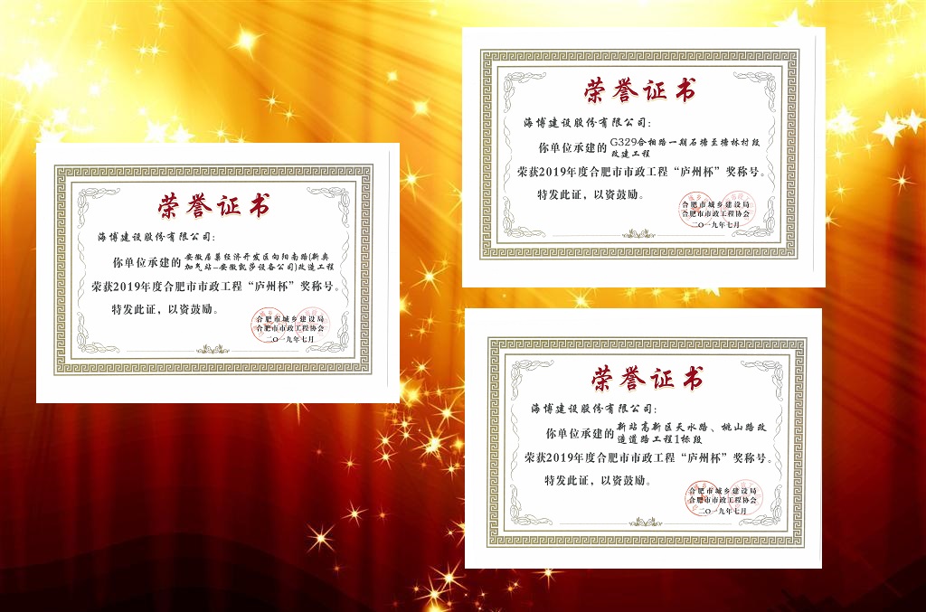 近日,由我公司承建的G329合相路一期石塘至塘林村段改建工程(總造價11338萬元)、新站高新區(qū)天水路、桃山路改造道路工程1標段(總造價2371萬元)及安徽居巢經(jīng)濟開發(fā)區(qū)向陽南路改造工程(總造價1108萬元)三個項目喜獲2019年度合肥市市政工程“廬州杯”獎稱號。“廬州杯”獎是合肥市市政工程質(zhì)量最高獎項,該獎項是由合肥市市政工程協(xié)會組織,經(jīng)單位申報、部門推薦、資料初審、形式審查、現(xiàn)場復查、建委等相關部門研究、網(wǎng)上公示等程序產(chǎn)生,層層篩選、好中選優(yōu)、優(yōu)中選精。