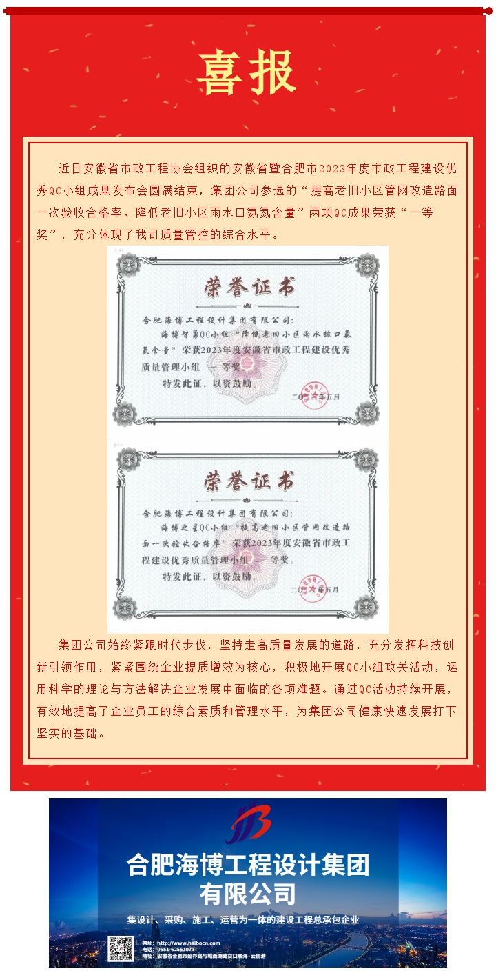 海博集團獲安徽省市政工程建設QC小組成果一等獎